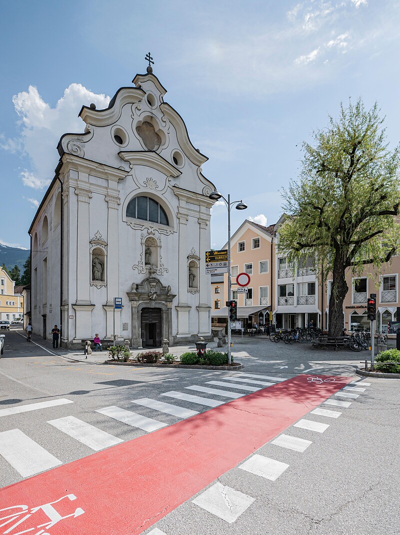 A beautifully restored Baroque church featuring an onion-domed steeple.The original church was consecrated in 1370. Inside, the high altar displays a depiction of the Baptism of Jesus, while the side altar features a painting of St. Elisabeth by Franz Unterberger (1707–1776).