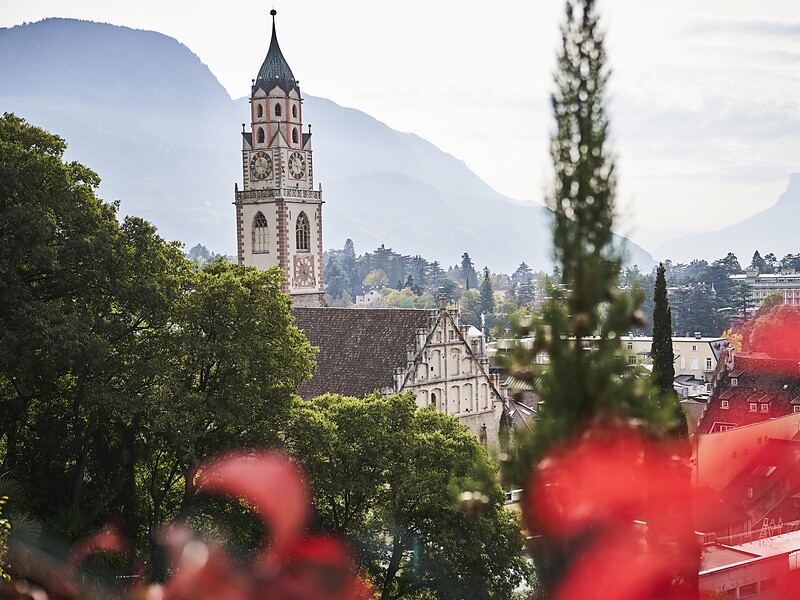 At Merano train station take either the bus no. 1 or bus no. 4 and get off at the Elisabeth Park stop at via Cavour. From there you reach the church in 10 minutes by foot.